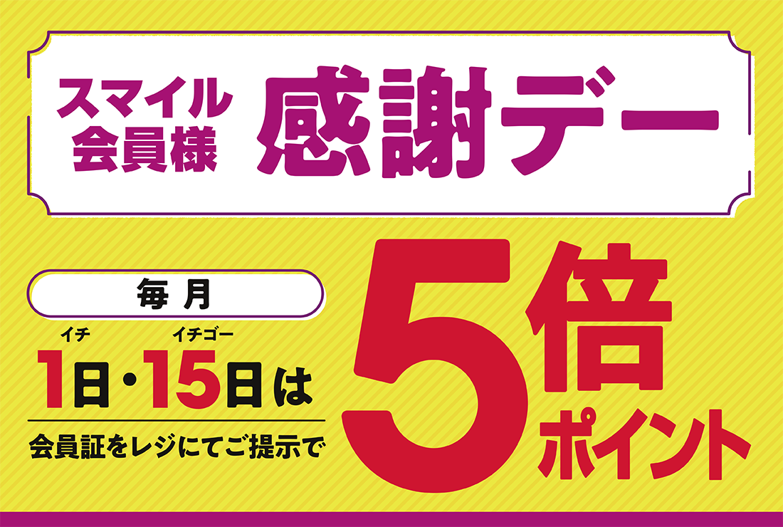 毎月1日・15日はスマイルカード5倍ポイント!